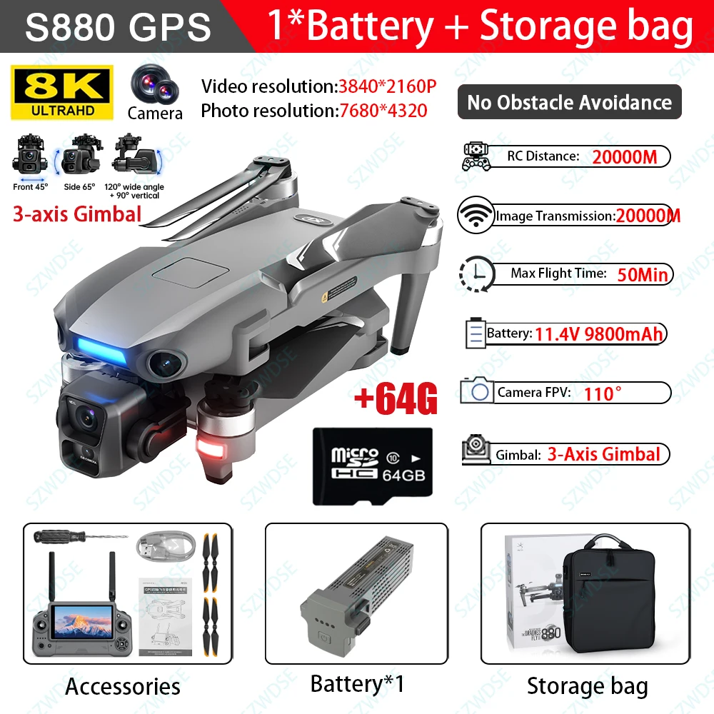 S880 Pro Max GPS Drone – 8K Camera, 3-Axis Gimbal, Brushless Motors