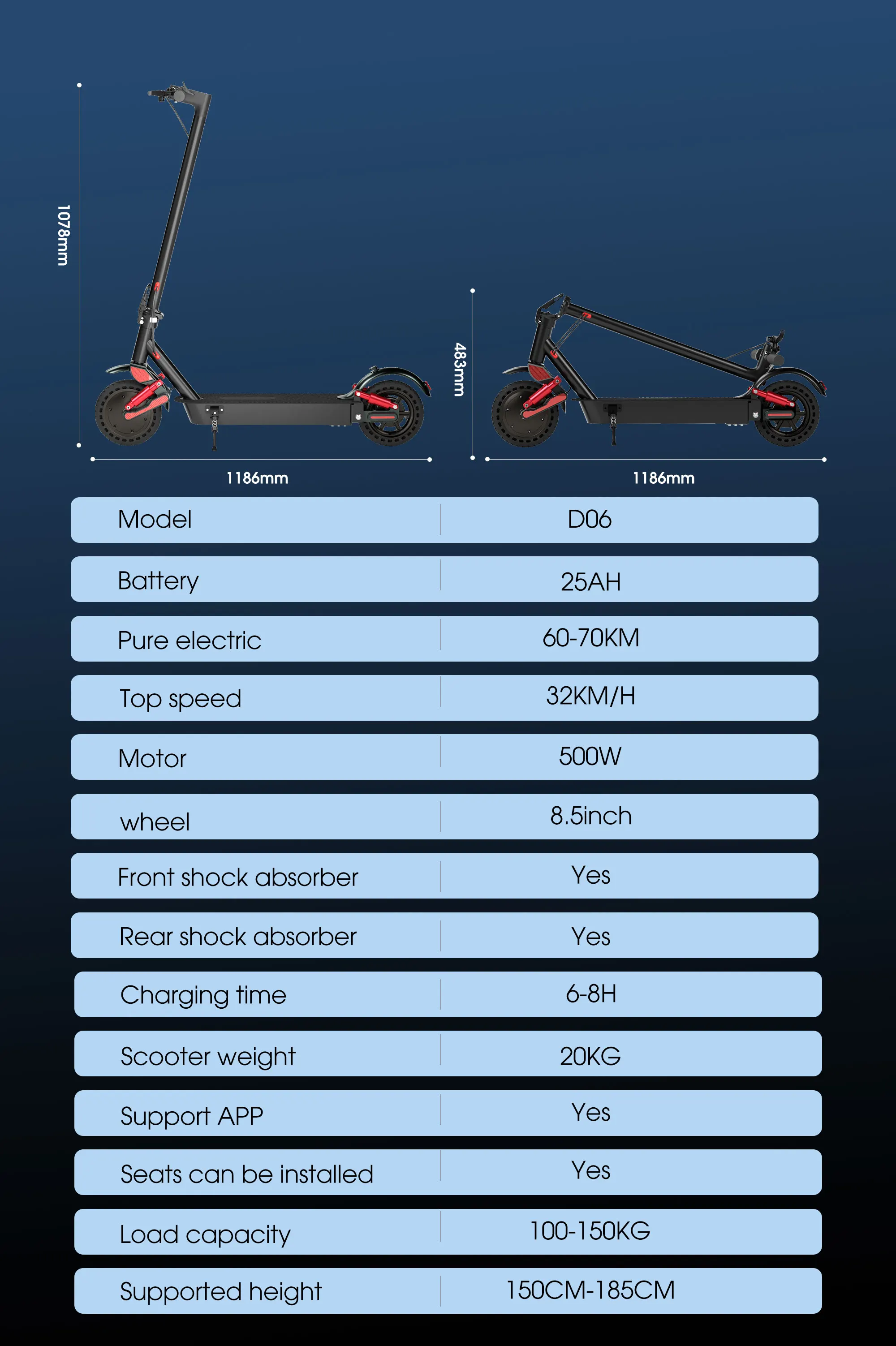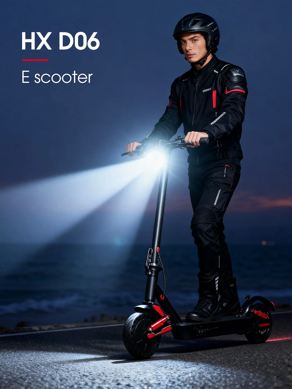 The HX D06 electric scooter is built for efficient urban commuting, offering a powerful 500W motor, long battery range, and smart app features. Its foldable design and shock-absorbing build make it a practical and comfortable choice for daily travel.