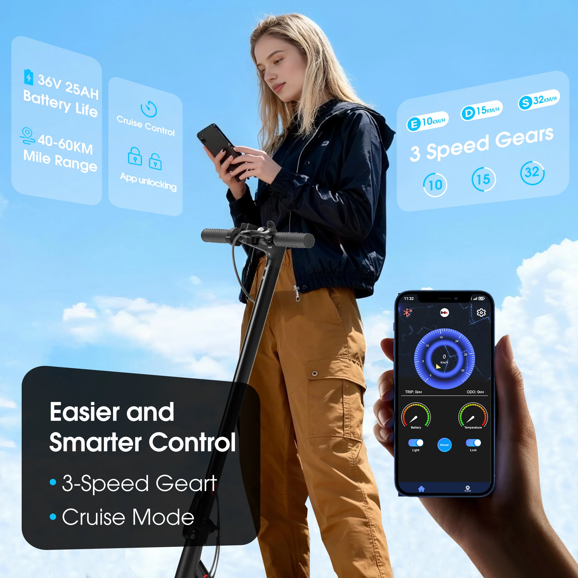 HX D06 Electric Scooter – 500W, 36V 25Ah, Foldable, App Control