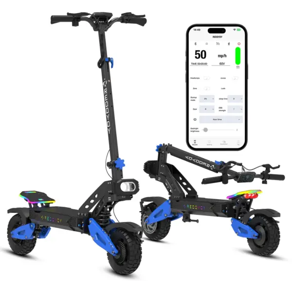 The RD2 off-road electric scooter is built for power, speed, and long-distance performance. With a 5000W peak dual motor, high-capacity battery, and rugged design, it delivers an exciting and stable ride for both city commuting and off-road adventures.