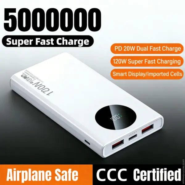 500000mAh Power Bank – 120W Fast Charging, PD20W, Digital Display