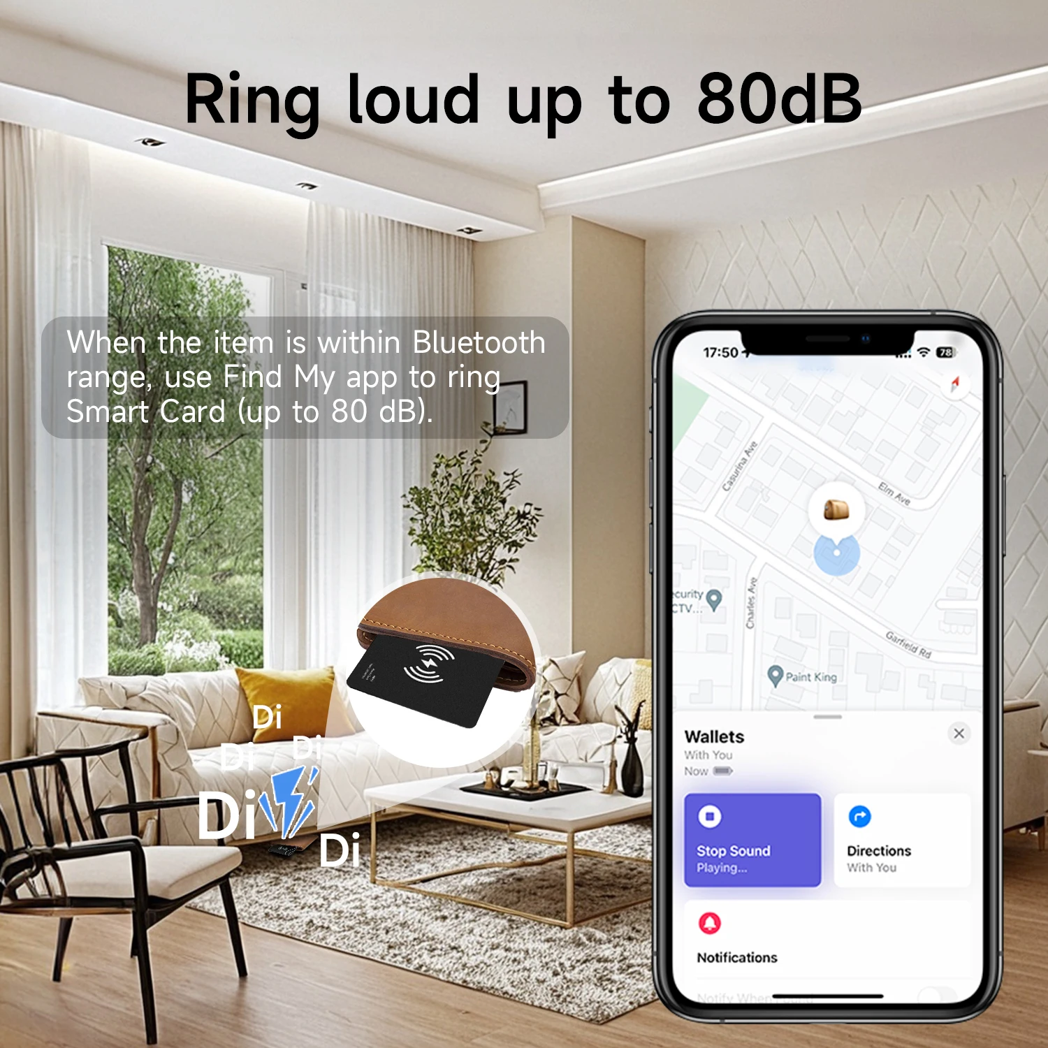 Within a 40m / 131ft Bluetooth range, trigger an 80dB sound and flashing light to quickly locate your item.