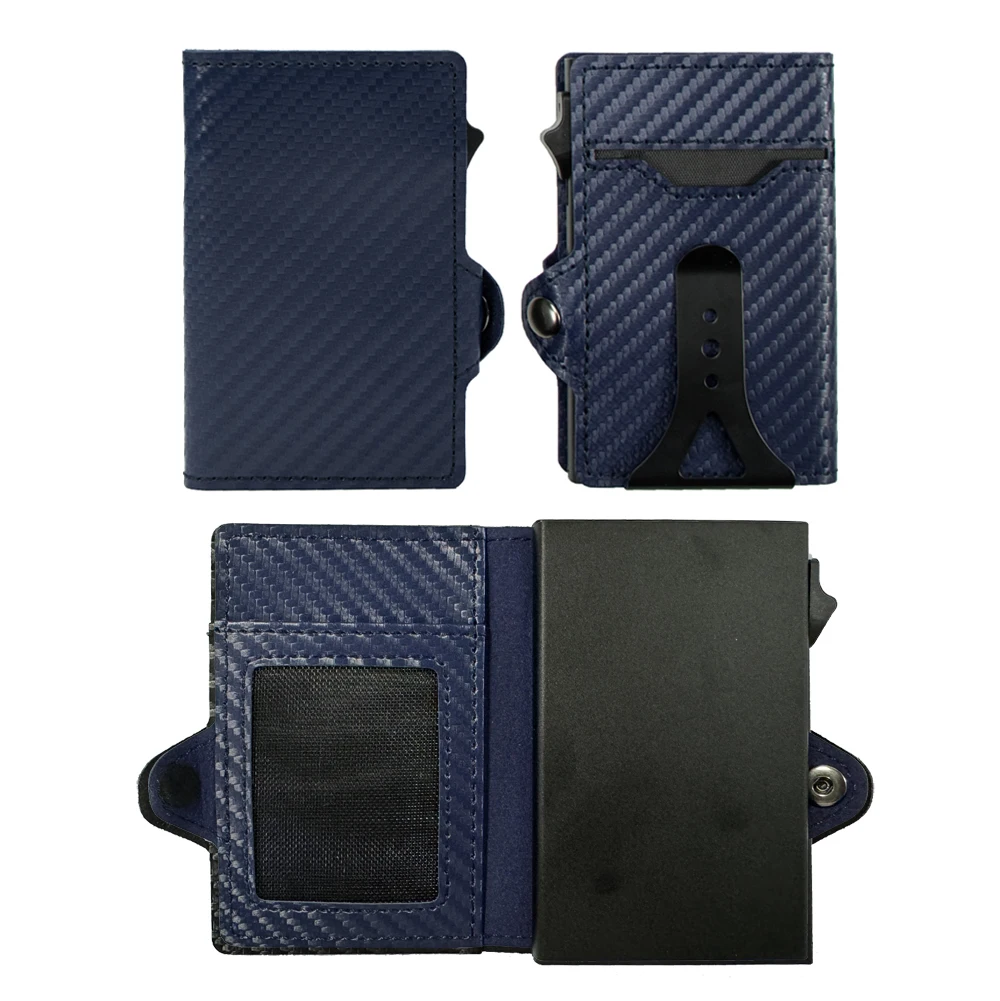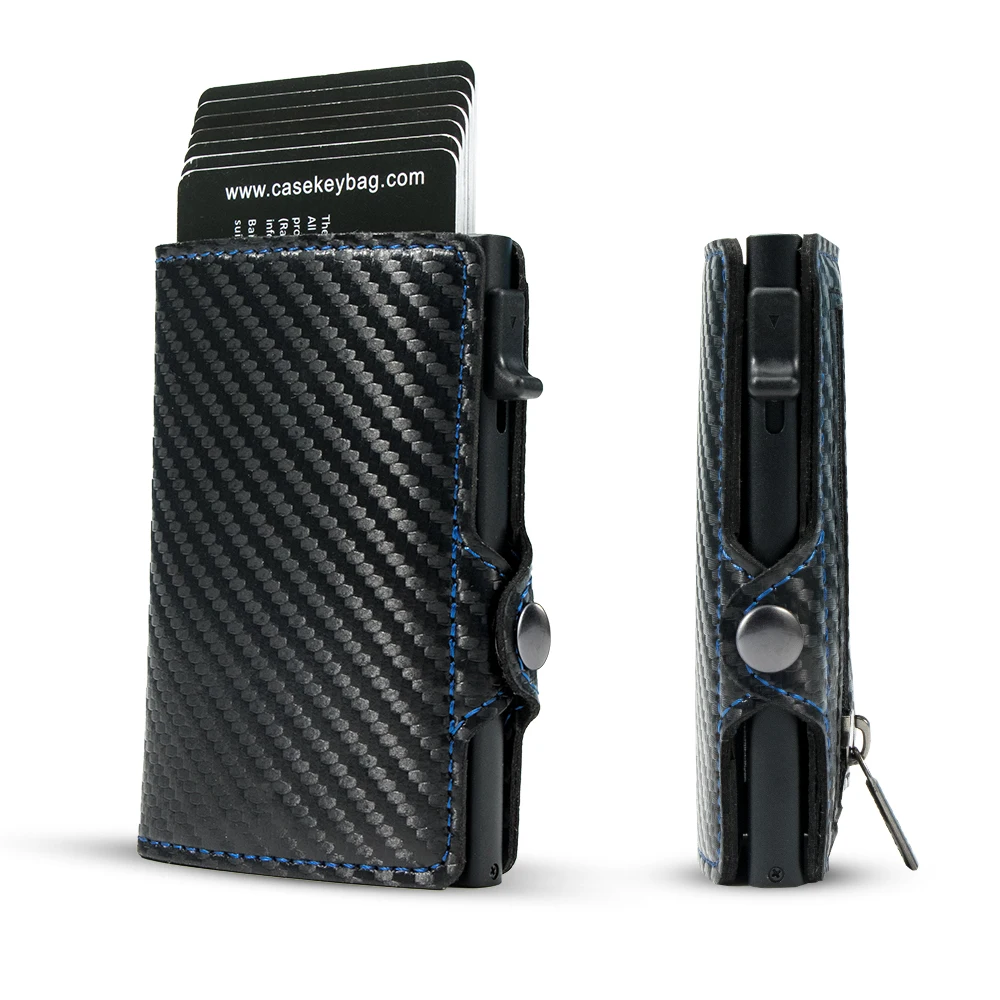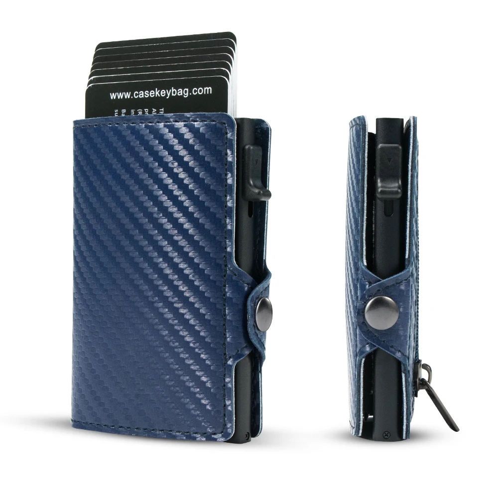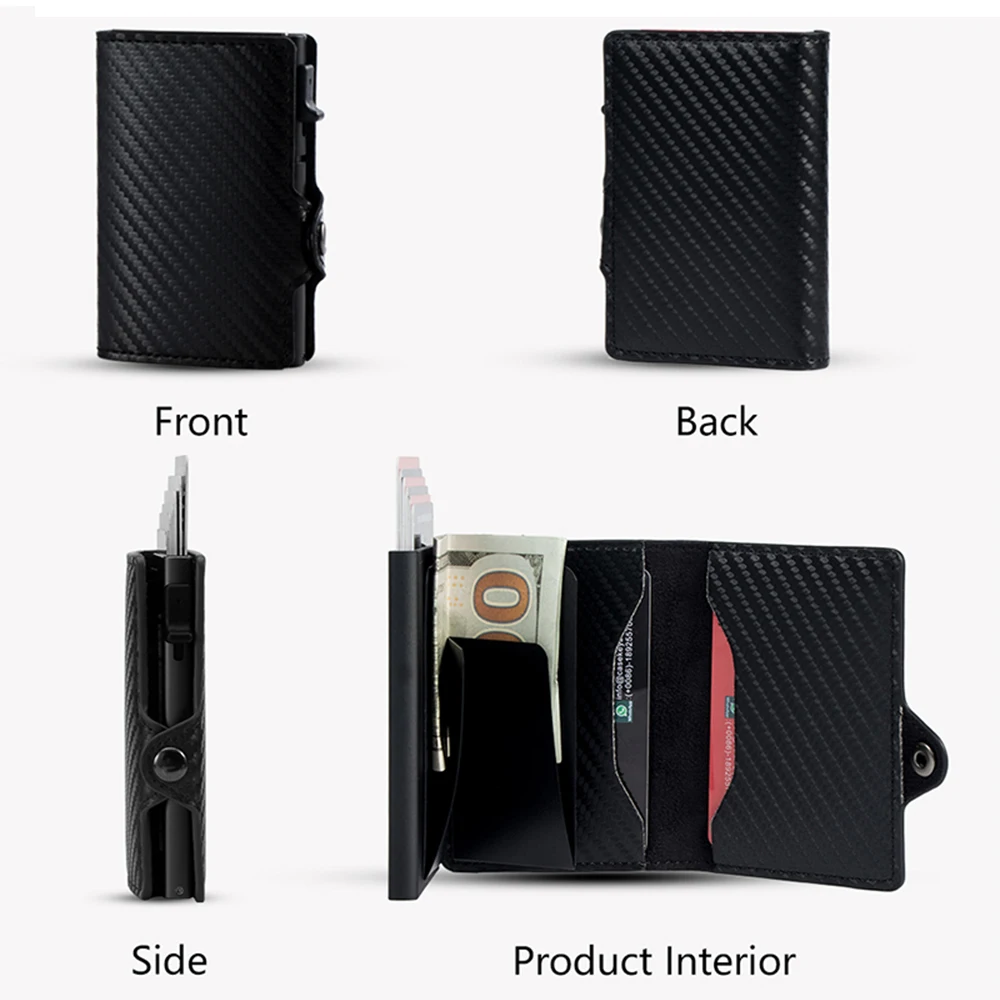 The pop-up mechanism allows instant access to your cards with a single click, making it fast and convenient for daily use. The carbon fiber finish adds a premium, sleek look, perfect for both casual and professional settings.