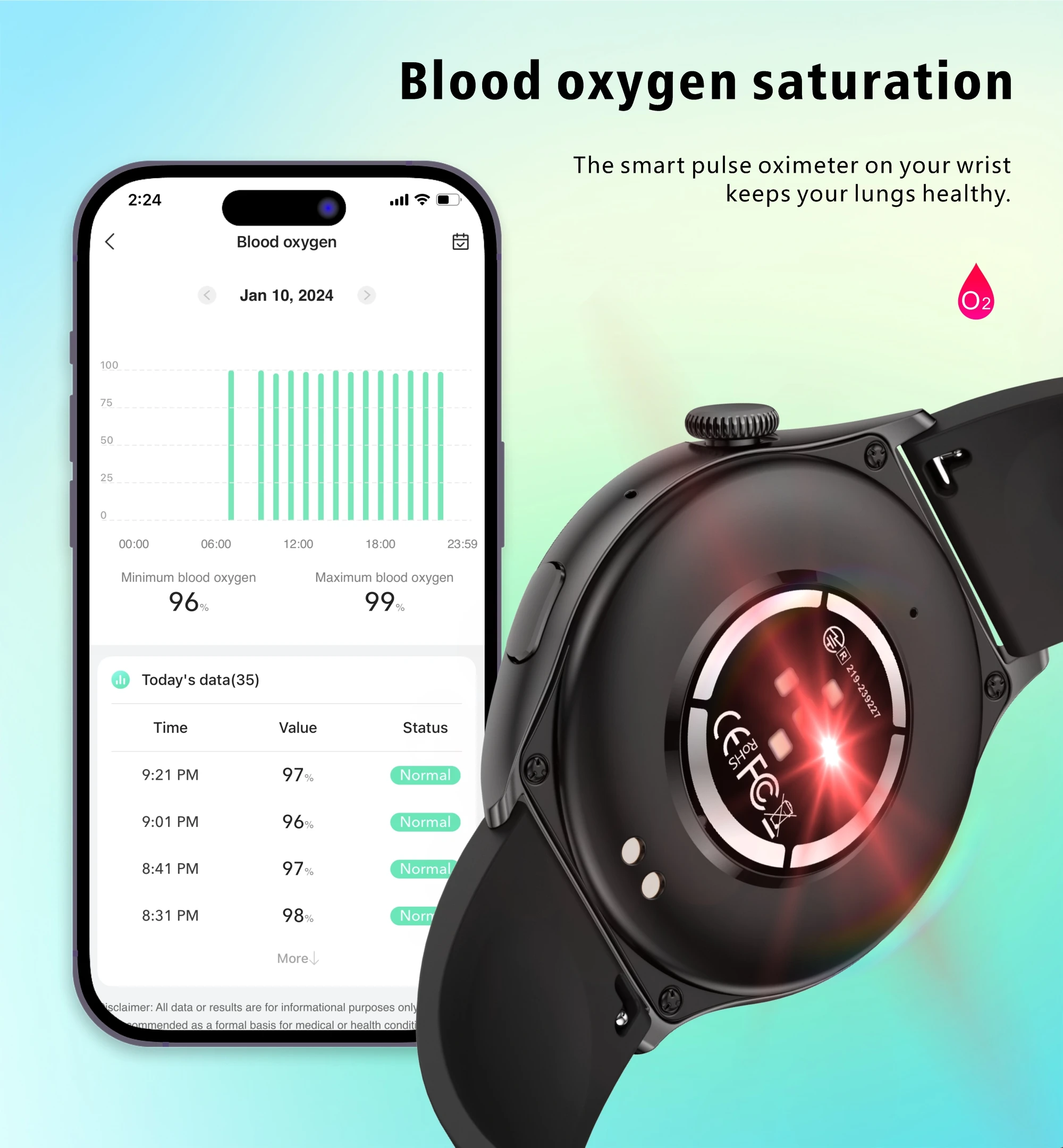 - Blood Oxygen (SpO₂)