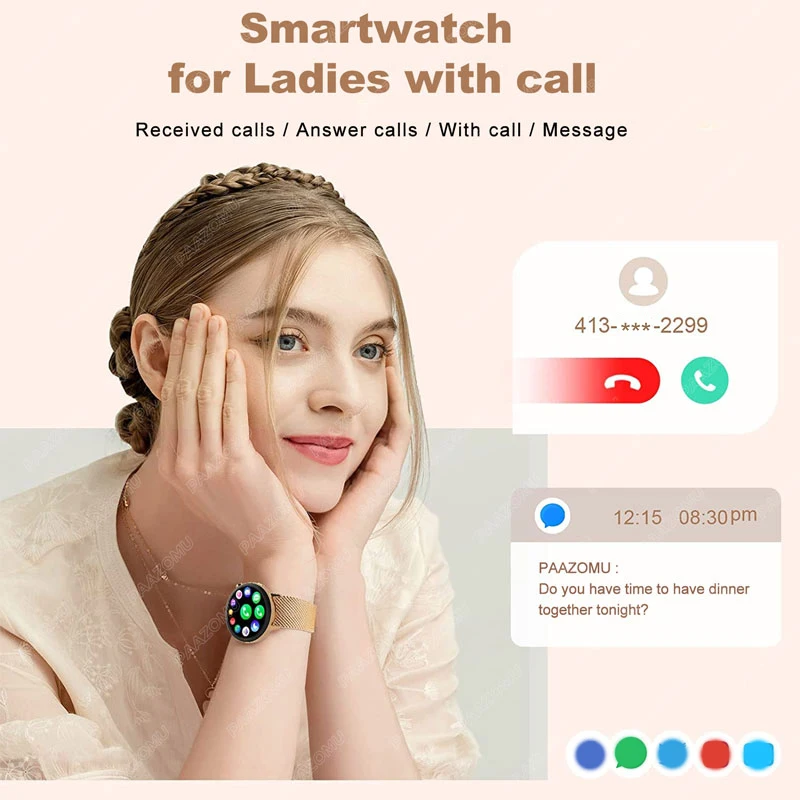 Women Smart Watch – AMOLED Display, Always-On, Bluetooth Call