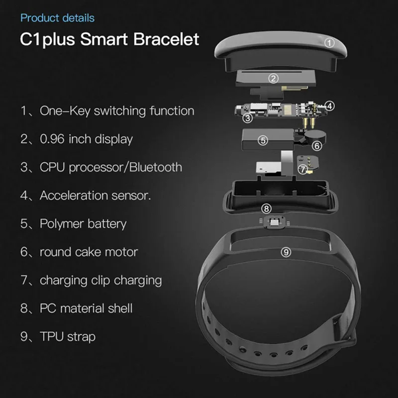 Lenovo C1 Plus Smart Bracelet – Activity Tracker for Men & Women